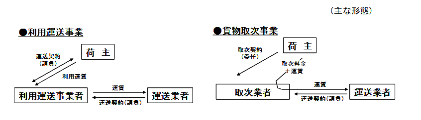 利用運送事業は荷主に対して運送責任を負います(請負契約)が、運送取次事業は荷主に対する運送責任を負いません(委任契約)。